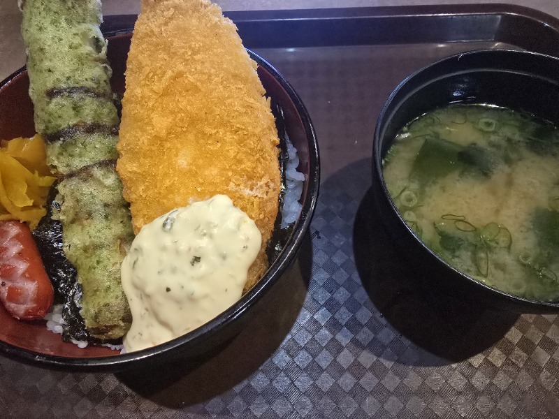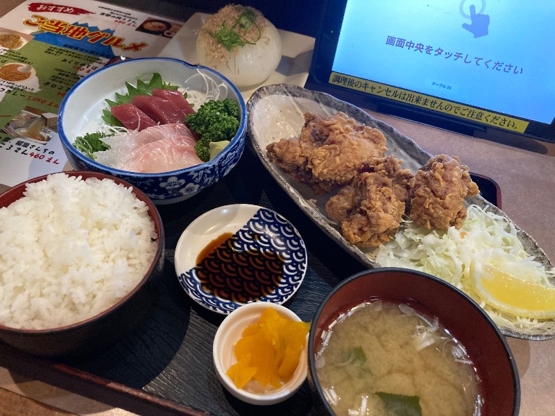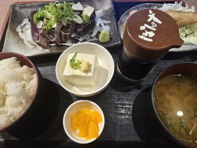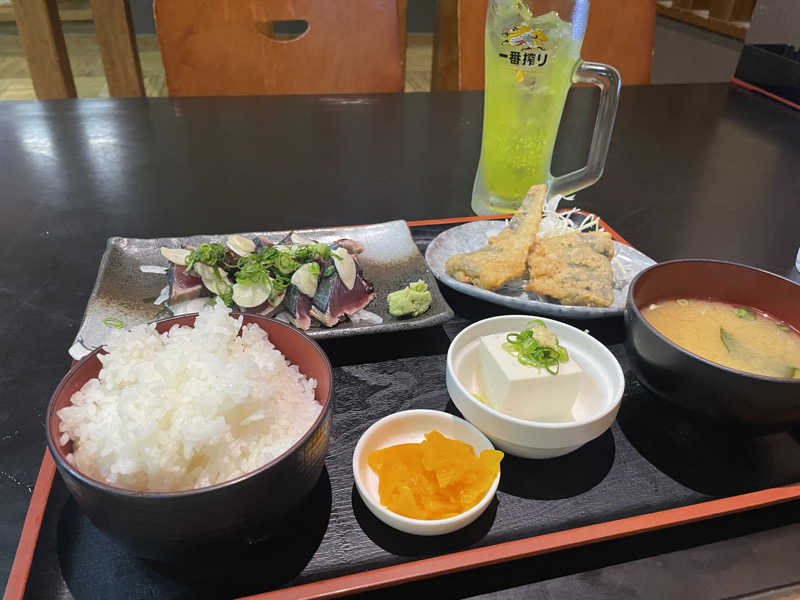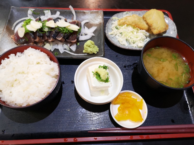 春の季節メニュー🌸鰹と🐟さわらの竜田揚げがご飯に🍚よく合います😋