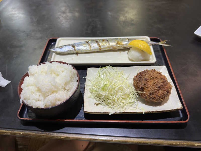 秋になると🍁販売される😍サンマの塩焼きと🐟舞茸の天ぷらが🍄ご飯に合ってウマイ~😋