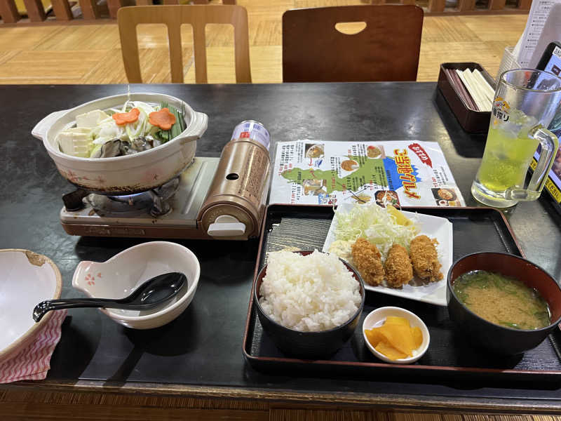 カキフライとチゲ鍋。チゲ鍋はカキの滋味が良く出てた