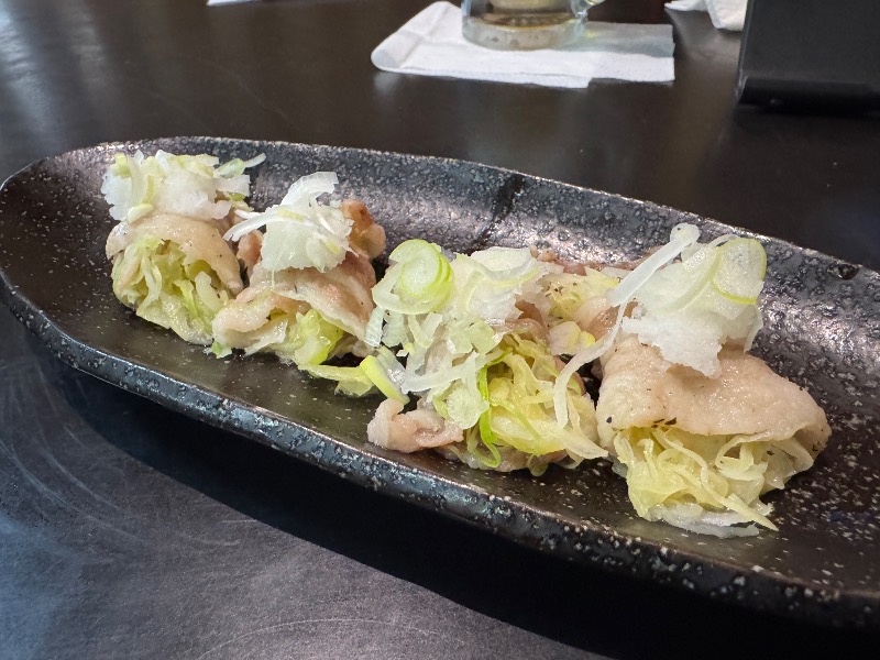 上にのった豚が生姜焼き風の味付けに びっくり🫢!おいしぃ🧡