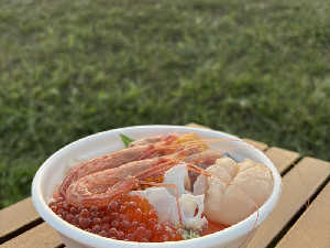 海を見ながら、テイクアウトの海鮮丼最高⭐︎