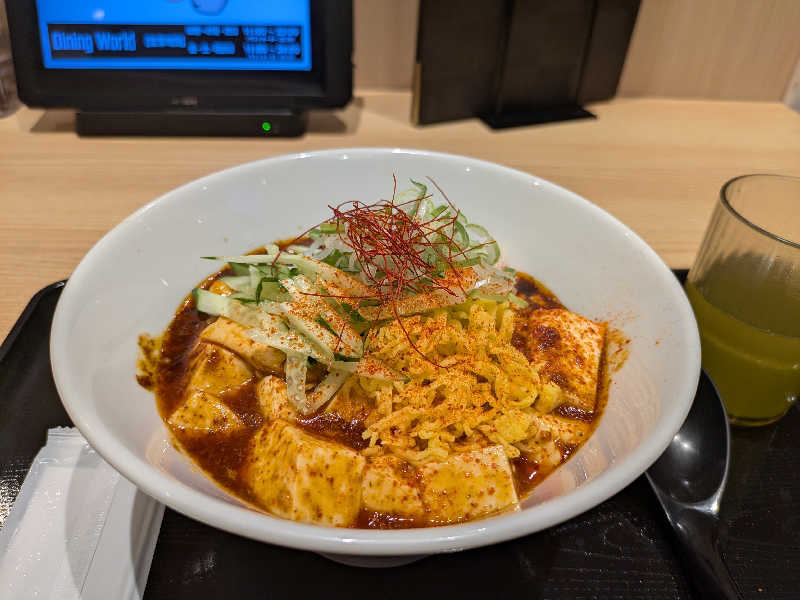 冷やしだけど辛味がホット、でも豆腐のおかげでマイルド。夏のサ飯にちょうどいいです!
