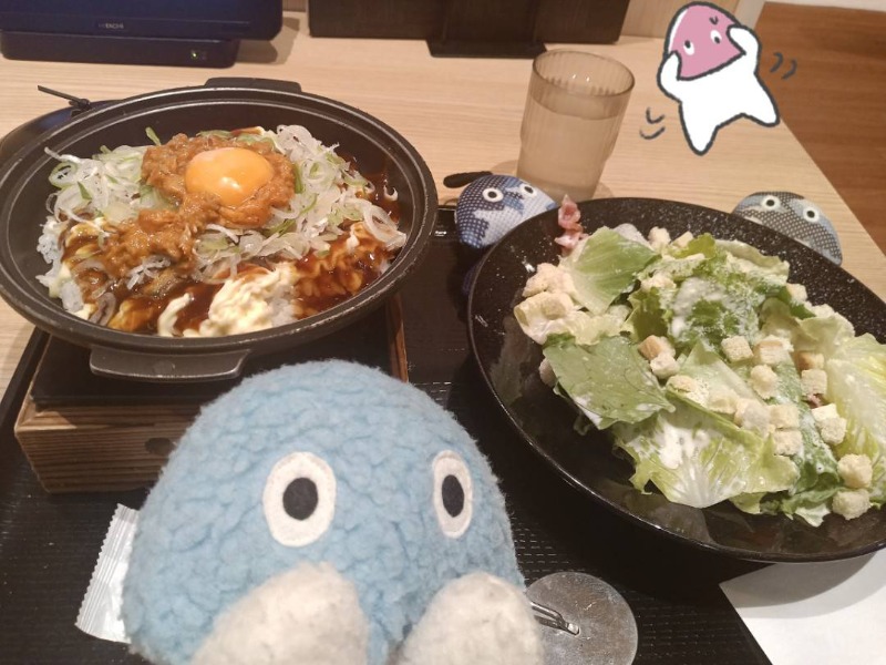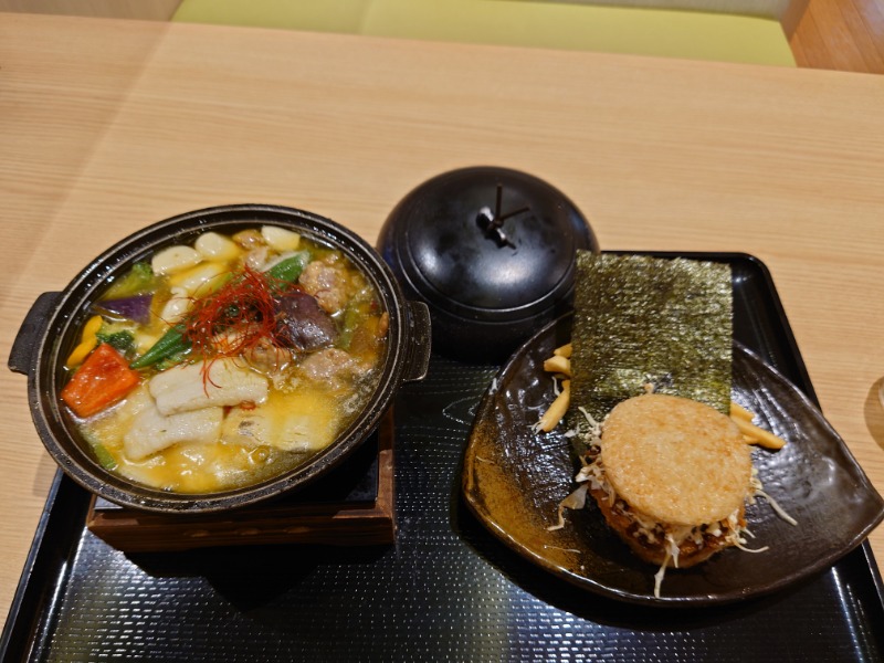 ルーロー飯風みたいな挽肉が載っている 揚げだこで美味しかった🐙 と陶板ステーキ天ぷら御膳