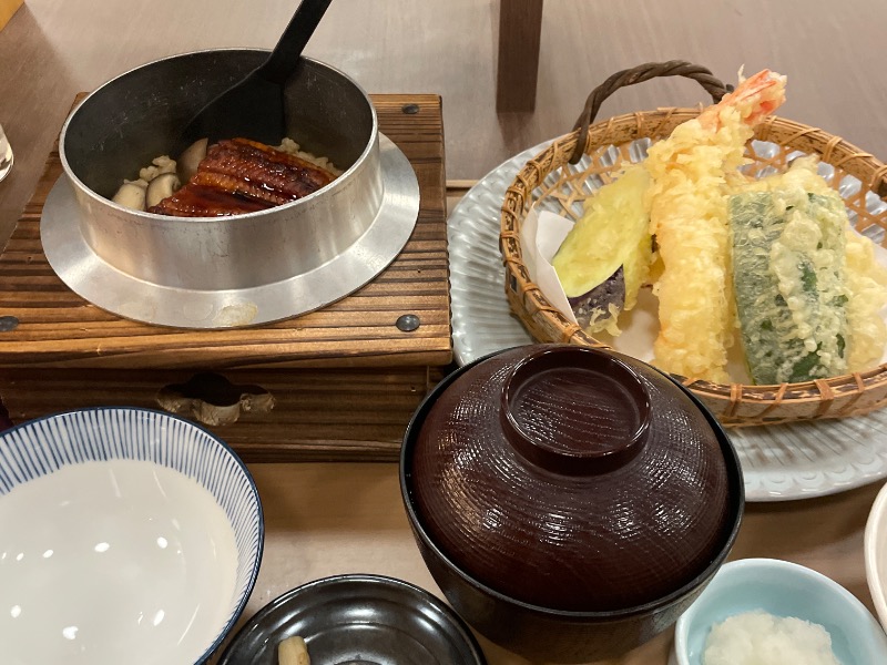 一本鰻と迷い釜飯にしたけど釜飯待ってる間に天ぷらお願いして🍺で良かったにゃん🐱