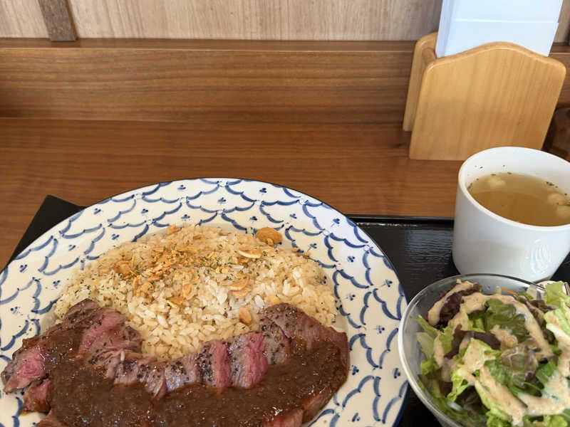 佐賀牛ハンバーグドリアと海老とアボカドソースのトルティーヤ😆 お風呂とセットで2580円🥰