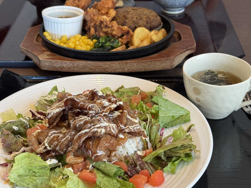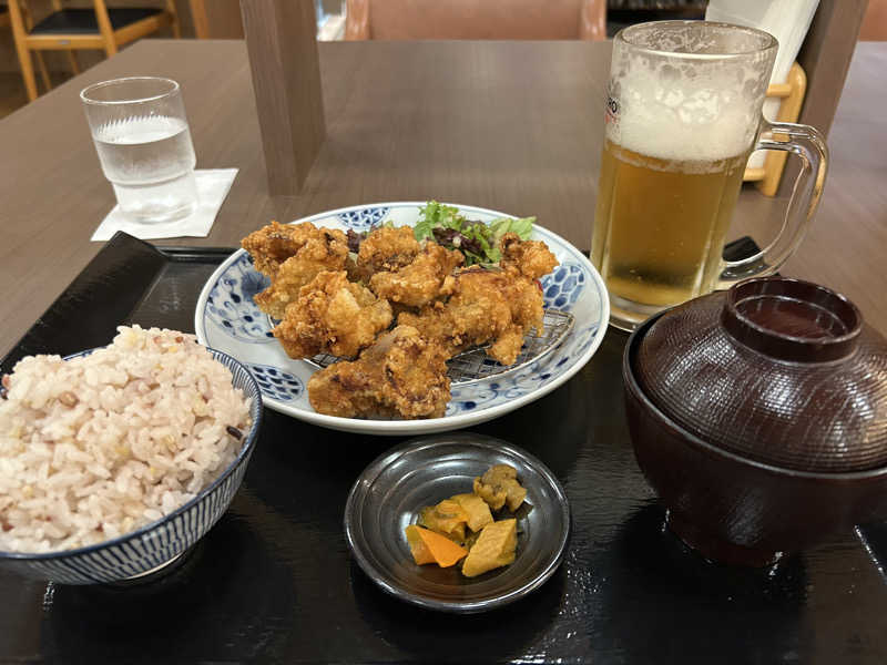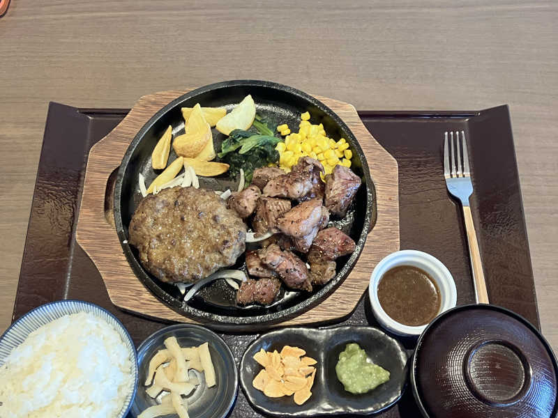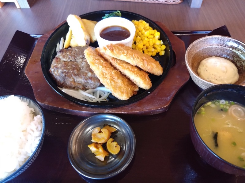 佐賀市のご当地グルメであるB級料理が味わえました。同行の後輩は佐賀牛ハンバーグ&みつせ鶏の唐揚げ。