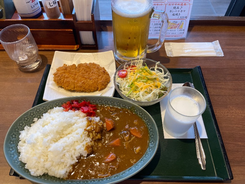 サウナに入っているときから既に口がカレーになっていました。何故か牛乳がついています。