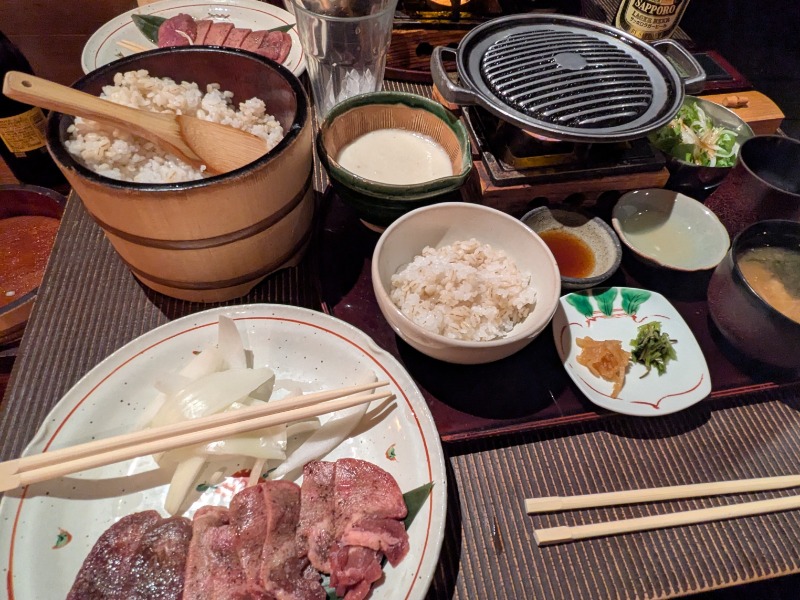 今日は1Fの滋養軒やってたから牛たん焼とろろ午前、川海老唐揚げ、茶碗蒸しを食ってく。腹いっぱい…
