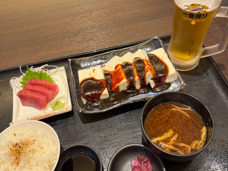 味噌冷奴は最初は良かったが、最後は持て余した😭その上赤だし!名古屋人以外食えないよね🤣