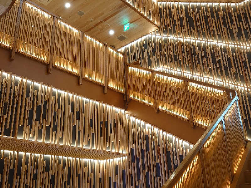 タワータイプの太閤サウナと、寝ながら蒸される蒸気サウナ、広めの水風呂といった構成で、サウナ間が小さな入口で繋がる室内空間が特徴的であった。