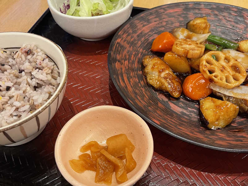 大戸屋安定の定食。 温浴施設で大戸屋が食べられるのはポイント高い。