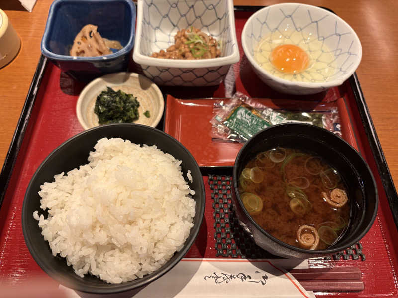 朝食チケットで色々なメニューが選べます。定食はドリンクプラス180円でつけられました😁