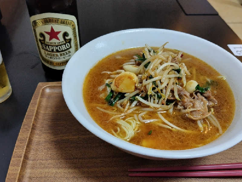 細麺🍜野菜マシマシ 1.300円 瓶🍺630円