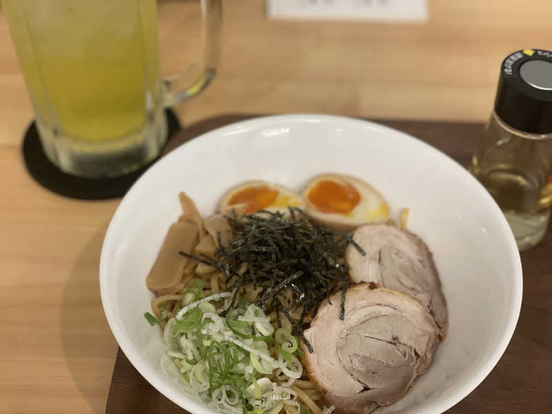 麺大盛🍜 生ビール🍺炭火焼き鶏ハラミ🦃ウェルビーサラダ🥗追加😋