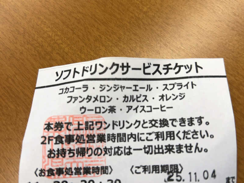 タオル不要でもらった券で、あとでジュース飲もうっと。