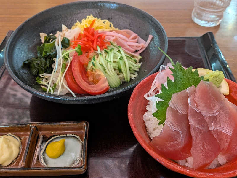 今日は冷やし中華とミニマグロ丼を美味しく頂きました✨
