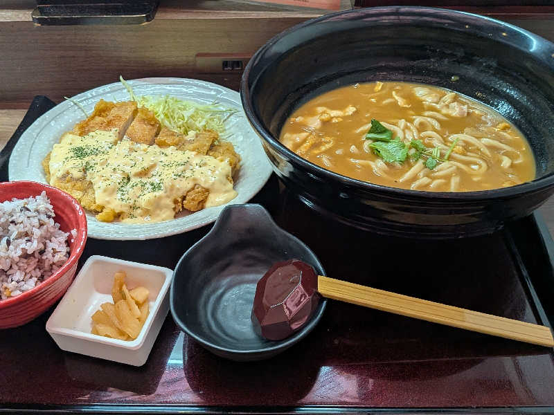 本日のランチは、カレーうどんと鶏天タルタルセット(ご飯は、十六穀米)を美味しく頂きました✨