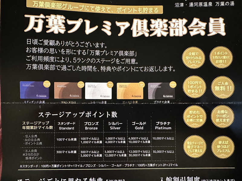 ・施設によって、ランクがゴールドでもプレミアムルームが使えない(小田原館、はだの館は利用不可)。プレミアムルームの利用法は館により異なり、予約制時間制の館もあるので、行ったら要確認。