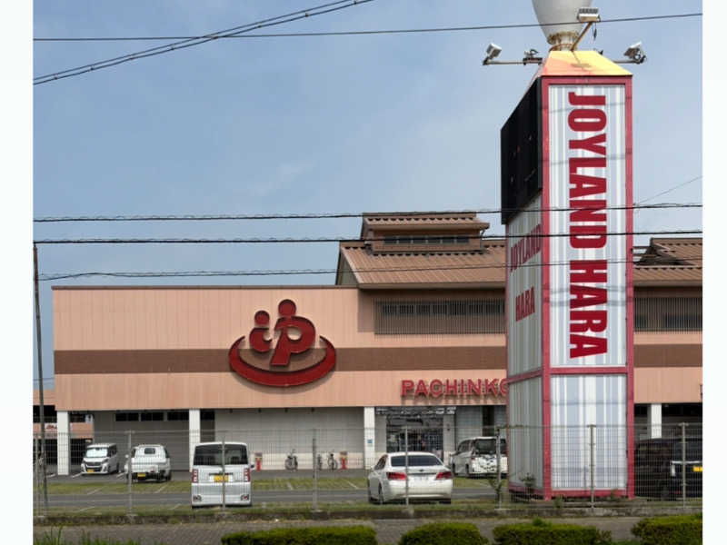 入口がパチンコ隣ゲーセン店内のEVから店舗2階=または店舗反対駐車場側階段で駐車場3階へ