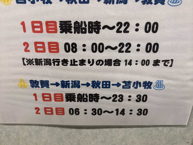 苫小牧までの10時間は長いが風呂入って、じっくり🈂️室で温まって寝てれば苫小牧に到着だろう