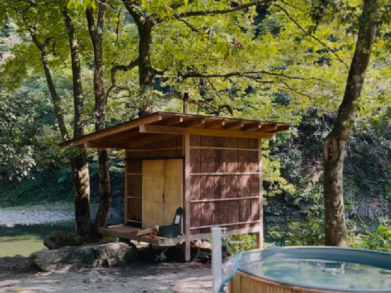 川辺ギリギリに、パラダイスサウナは聳え立つ。