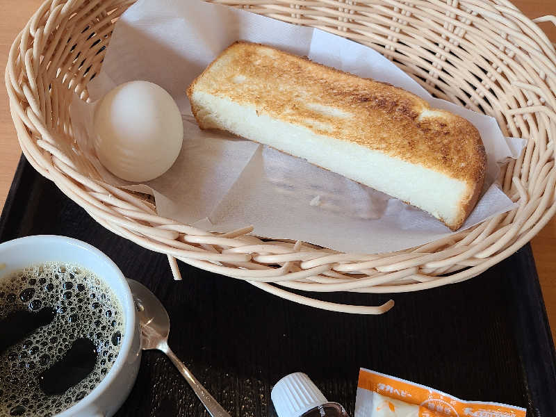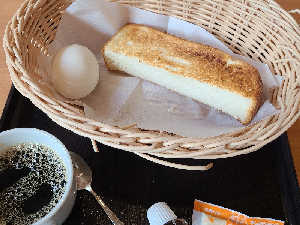 コーヒーかリンゴジュースか選べる。マーガリンは揉んでから使おう