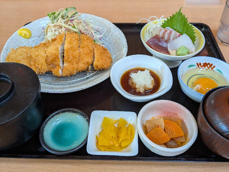 今日のランチはチキンカツ定食(生玉子トッピング)を美味しく頂きました✨