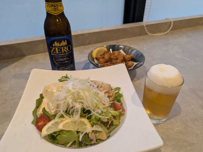 ¥830 なんこつ唐揚げ¥450 アサヒゼロ¥520 サラダが美味しいー