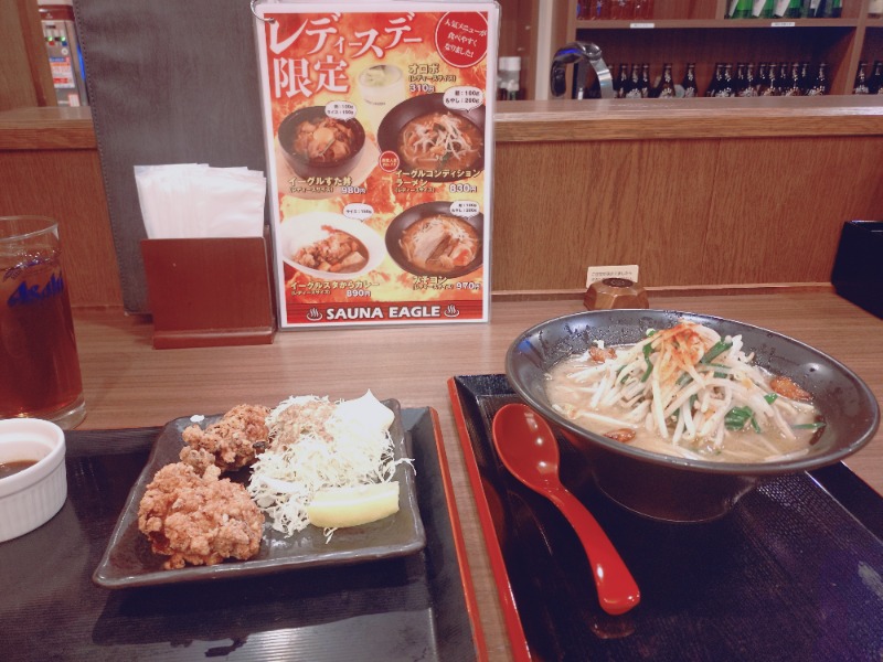 念願のサ飯🥹ラーメンもオロポもレディースサイズがありありがたや🙏
