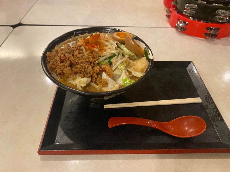 味玉、台湾ミンチ、野菜マシ(キャベツ)、にんにくマシ(おろし)をトッピング。お店レベルの美味しさ!