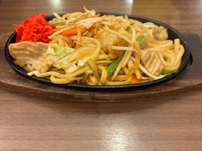 熱々の鉄板で焦げ目のついた焼きうどんはたまりません