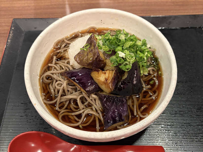 暖かいお蕎麦と食べ応えのある揚げ茄子で腹ぺこだったお腹もいい感じに♥️