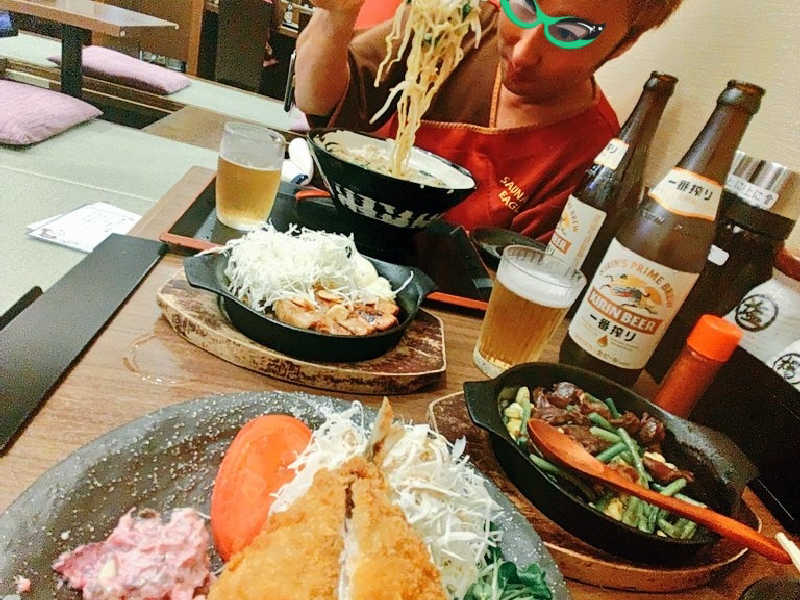 オロポが通常サイズで大ジョッキ😂 ラーメンはニンニク多めでぶち美味い😋🧄