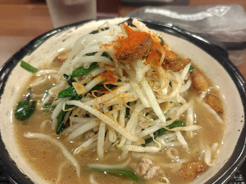 にんにくともやしの存在感がすごい、ガッツリ系ラーメン。お店のおすすめ。