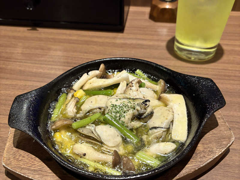 ギガオロポセットの付け合せはこれ!アヒージョの塩味がサウナ後に良い!