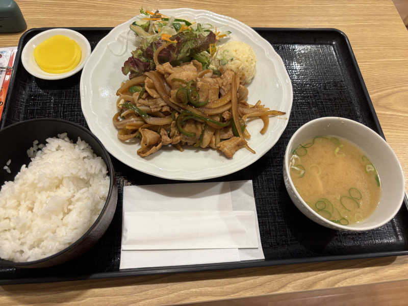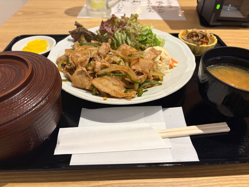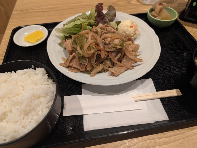ボリューム満点で嬉しい。生姜感は少し弱め。ご飯は大盛りにしちゃいましたが、普通盛りでも十分な量です。