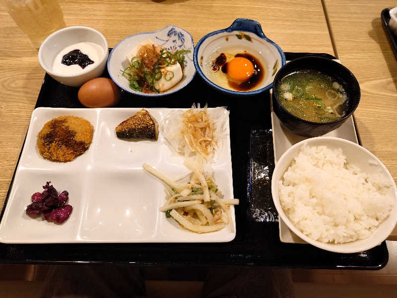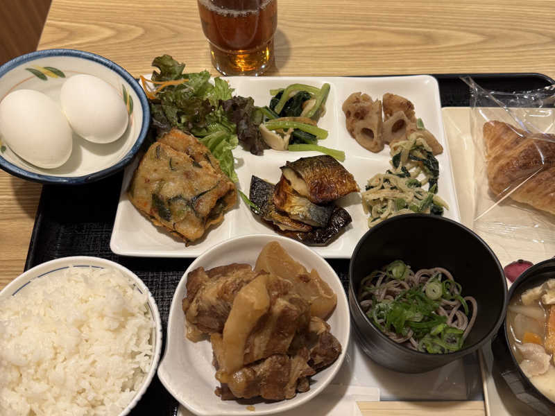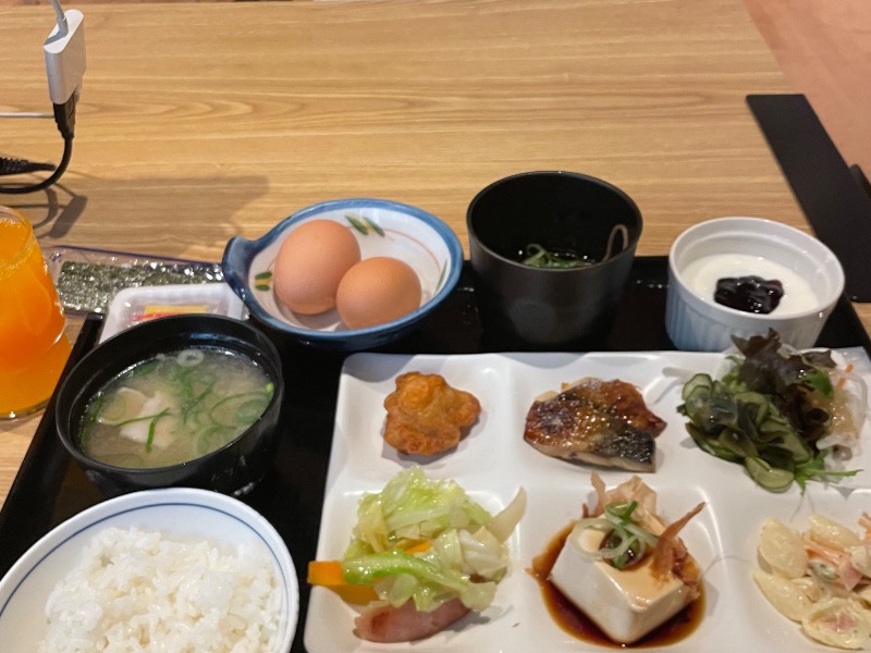宿泊者無料とは思えぬクオリティ。 だしの効いた味付けが起き抜けに優しい。