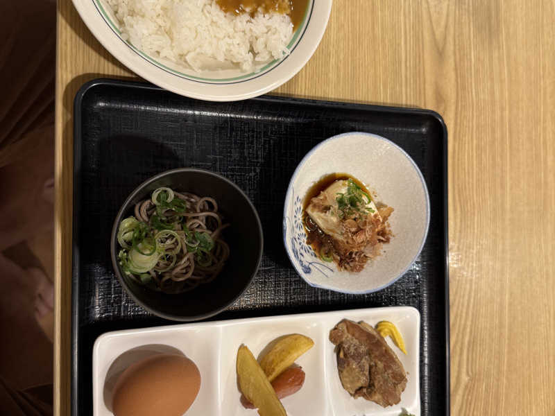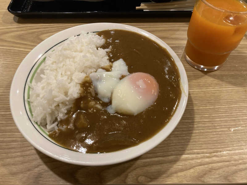 朝バイキングの〆はルーマカレー温泉卵乗せ