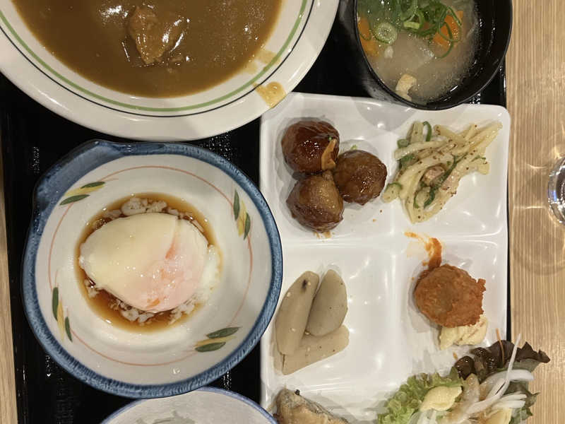 蓮根が美味しかった。それ以外は普通。おかわりはバイキング定番のカレー。