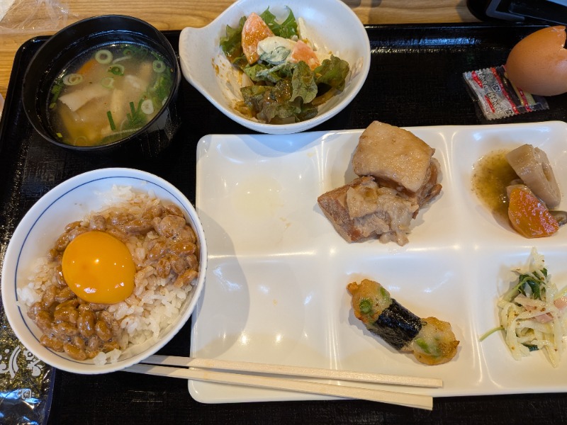 カプセルホテルの朝食バイキングとしてなかなかクオリティ高し、普通に美味しかった。豚汁提供が嬉しい🥰
