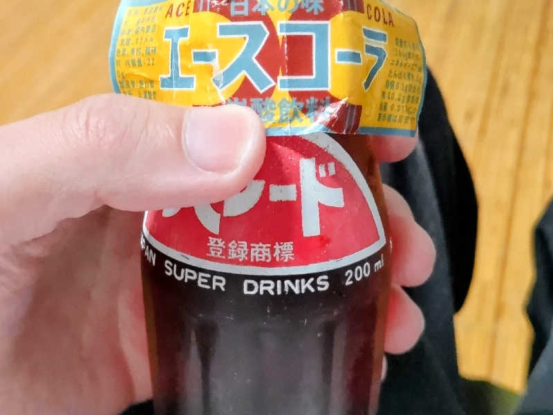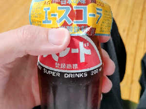 見たこともないコーラ。滋賀県で作ってるらしい。瓶は回収してるそうです。味は駄菓子のような甘さだった。