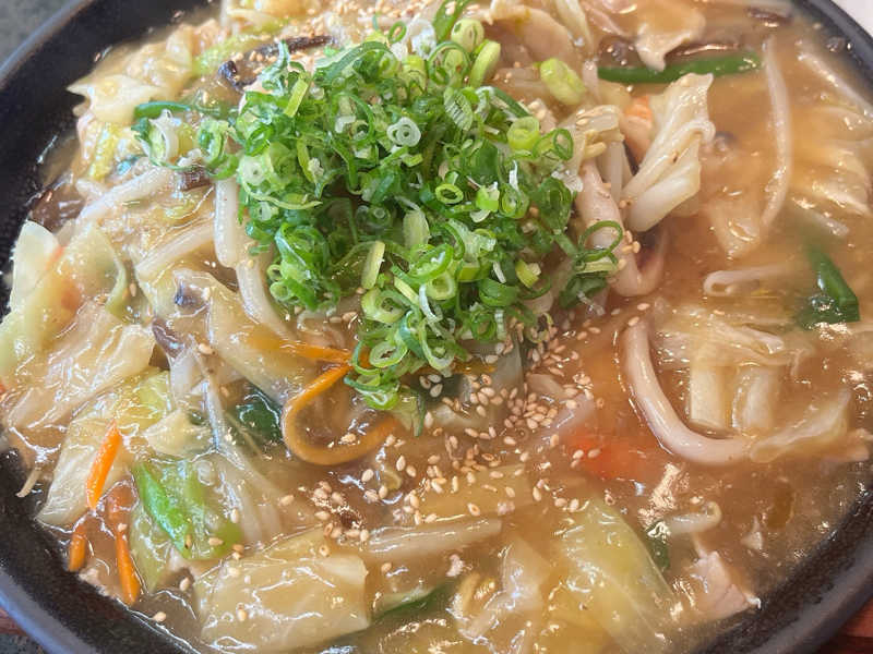 大食いの私でも満足のボリューム。たっぷりの海鮮とお野菜の餡が麺に絡んで大満足。
