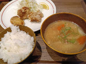 静岡は水が良いからかご飯がうまい🍚 汁物が豚汁というのも嬉しい。