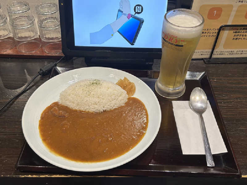 本日生中半額で300円🍺 サウナ後は辛いもの食べたくなるけど、シンプルにカレー🍛