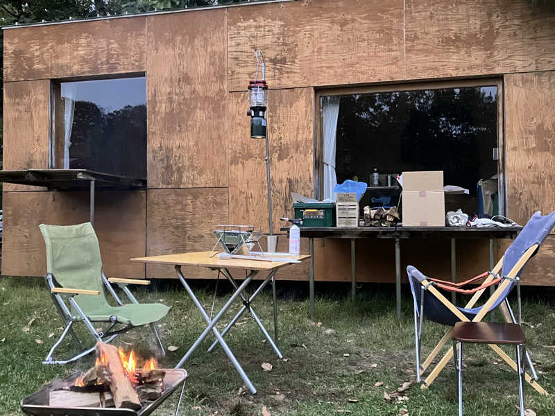 子供達はいないので簡単に済ませるため、テントは立てずに「住箱」と言う木製コンテハウス