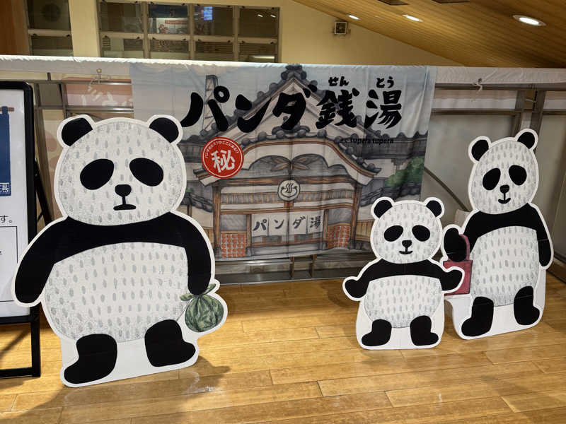 パンダ銭湯っていう絵本とコラボしてるみたいでいたるところに可愛いパンダが🐼🖤🤍サ室のテレビでもパンダの赤ちゃんやってて、パンダ好きのわたしずっと歓喜🙌💓(笑)