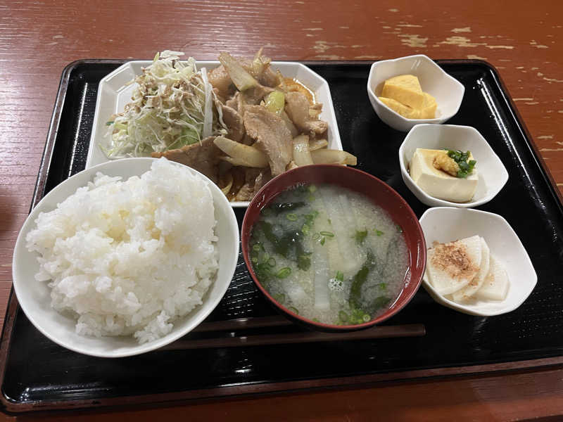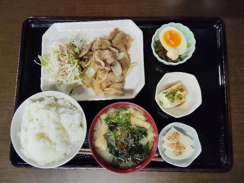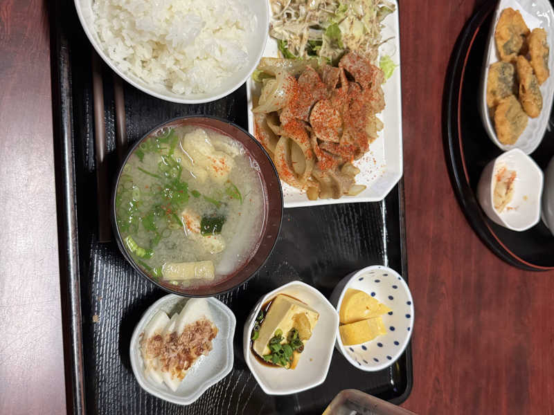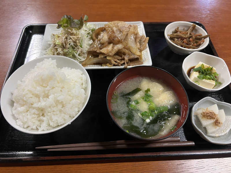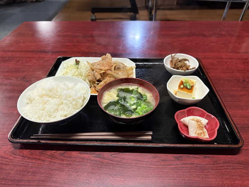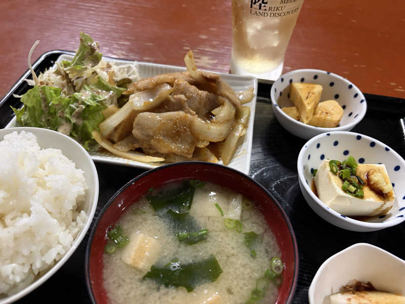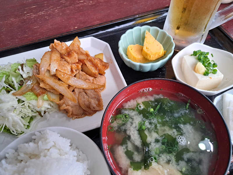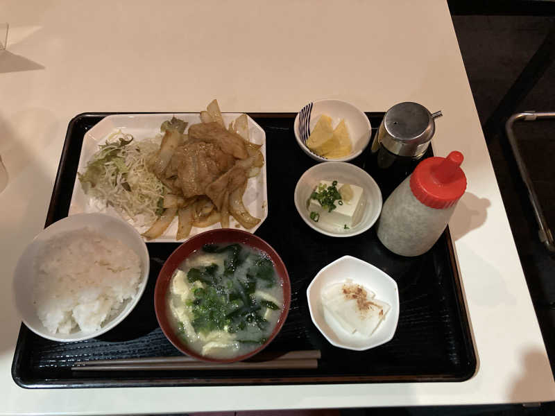 肉厚でボリュームある定食。 サウナ後はこれに決まり!