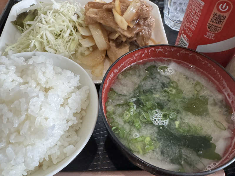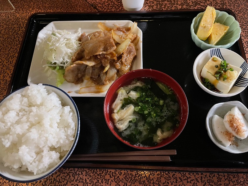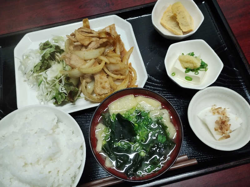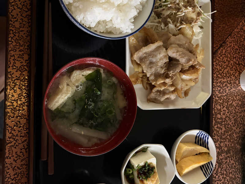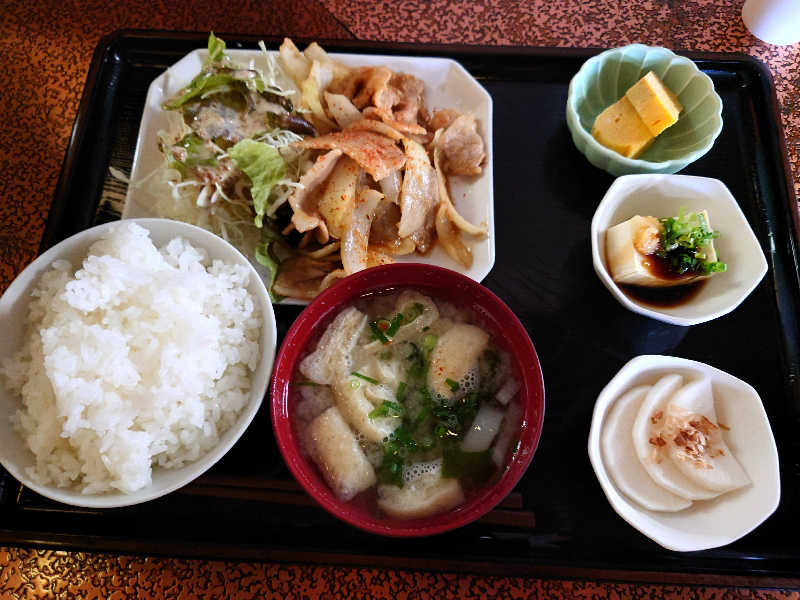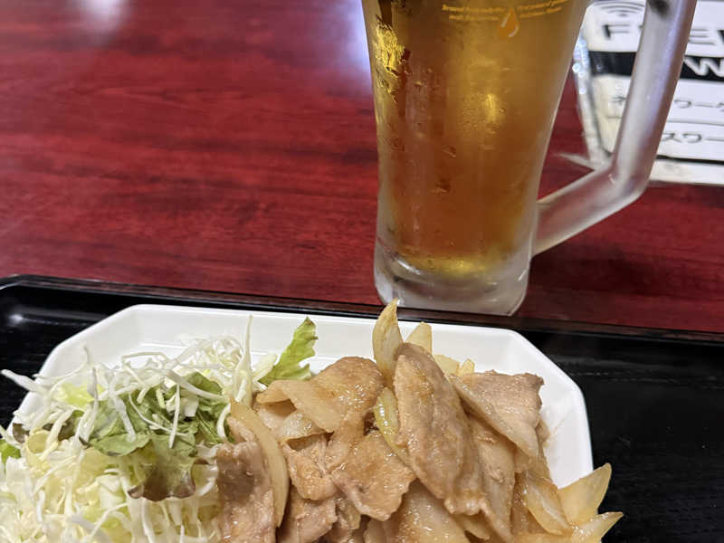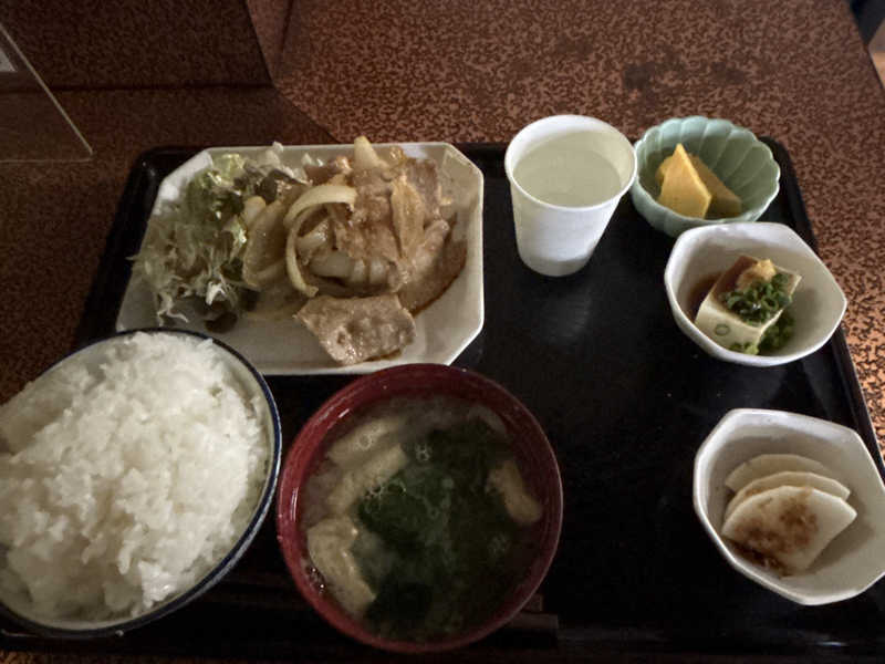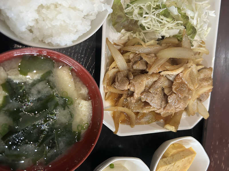 肉厚でボリュームある定食。 サウナ後はこれに決まり!
