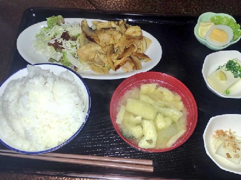 生姜タレがしっかり染みた生姜焼き定食 お母さんの味。とても美味しかった!