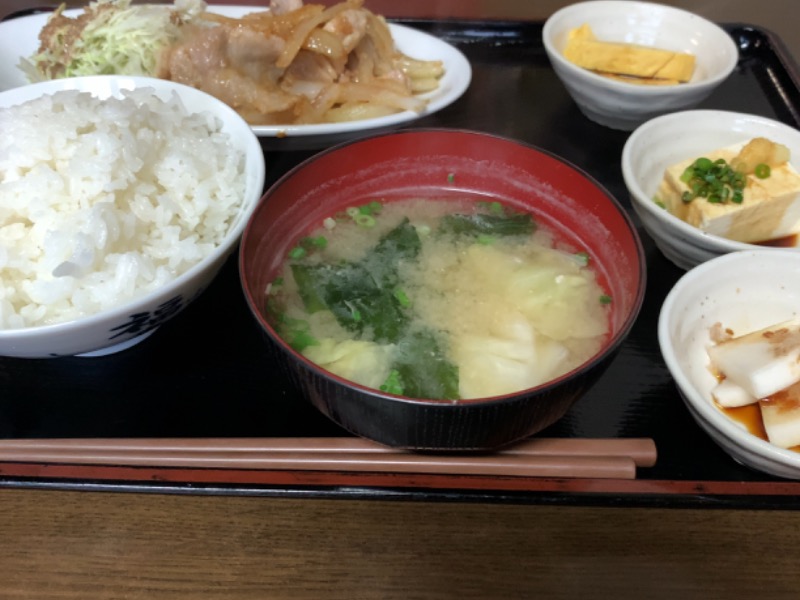 ど真ん中の味。 こういう所でこういうのが食べたい、という欲求を満たしてくれる。 ご飯も多め満足。